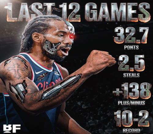 快船13战11胜小卡+145联盟封王!场均32.7分无愧战神美媒力挺MIP